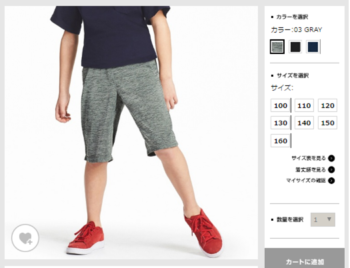 KidsサイズのXSが110cmに該当するようだったので、イージーショートパンツ 110cmを購入してみました。